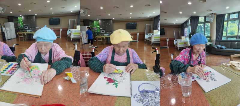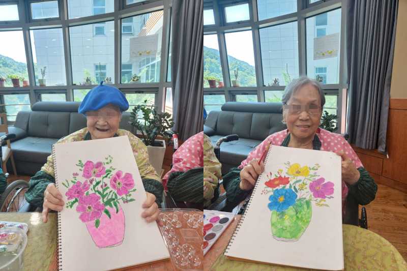 다양한 미술 활동을 하시며 즐거워하시고 작품 완성을 통해 성취감을 느끼시는 시간을 가졌습니다.