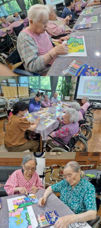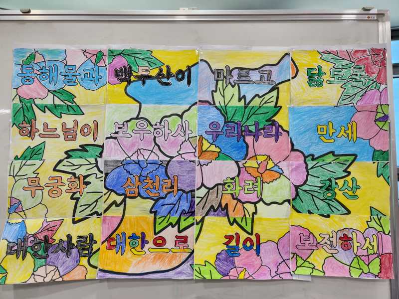 어르신들과 함께 협동하여 애국가 작품을 만들었습니다.