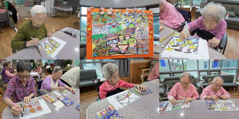 어르신들께서 각자 맡으신 부분을 색칠하시며 함께 협동 미술 작품을 완성하셨습니다.