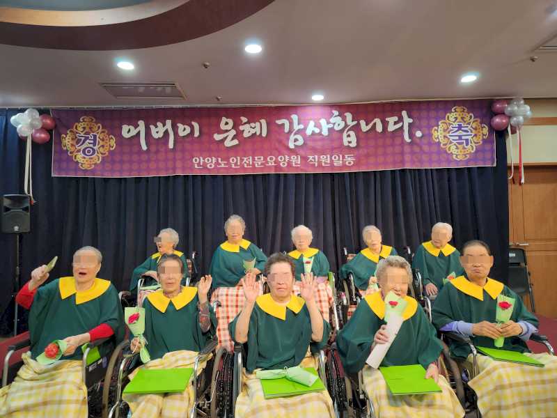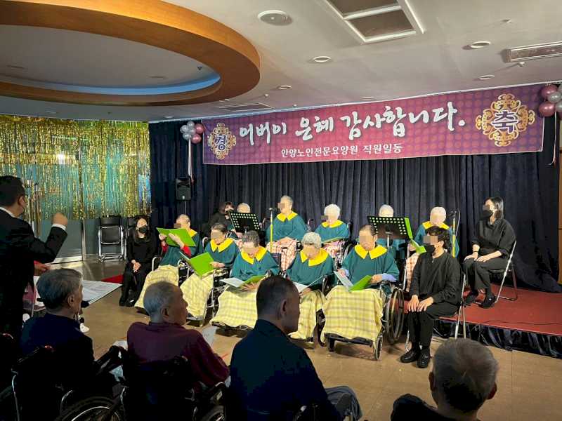 그동안 즐겁고 열심히 연습하셨던 노래를 부르시며 요양원 어르신들과 직원들이 다함께 즐기는 시간을 가졌습니다.