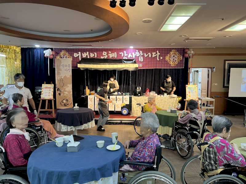 다른 어르신들과 담소를 나누시며 즐거운 시간을 보내셨고, 다음에 또 들려서 마시고 가겠다고 하시면서 말씀해주셨습니다.