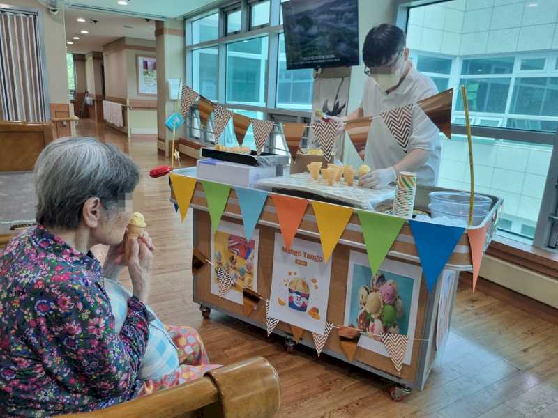 석수동다방 프로그램으로 어르신들께 시원하고 달달한 아이스크림을 준비하여 어르신들께 제공해드렸습니다.