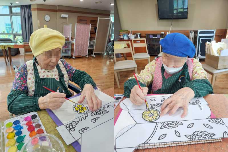 다양한 미술 활동을 하시며 즐거워하시고 작품 완성을 통해 성취감을 느끼시는 시간을 가졌습니다.