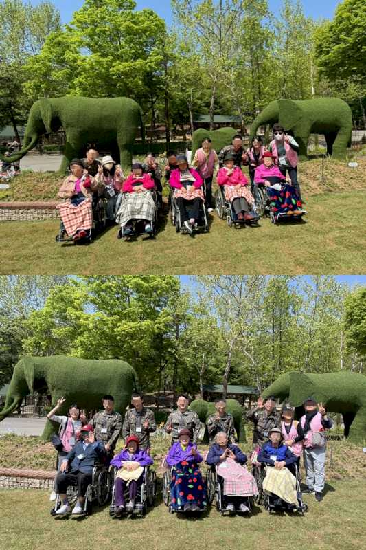 손자같은 군인분들과 즐겁게 이야기하시고 동물도 구경하시며 즐거운 시간을 보내셨습니다.