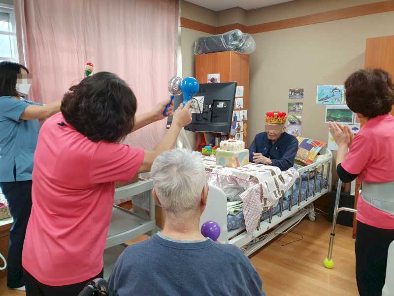 각방 어르신과 요양보호사님들과 함께 축하하는 시간을 가졌습니다.