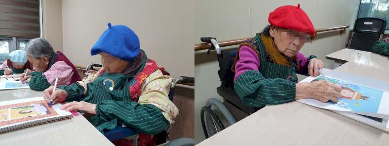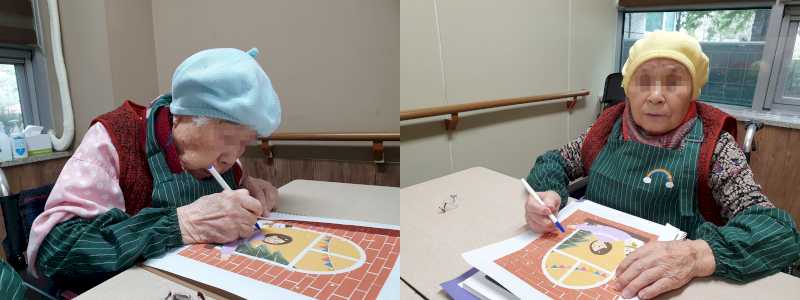 다양한 미술 활동을 하시며 즐거워하시고 작품 완성을 통해 성취감을 느끼시는 시간을 가졌습니다.