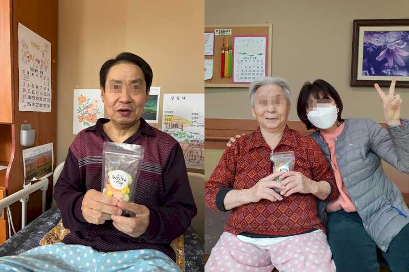 3월 14일 화이트데이를 맞이해서 어르신에게 화이트데이선물로 머랭쿠키를 전달해 드렸습니다.