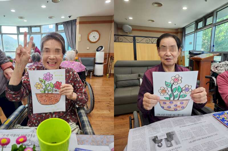 꽃을 이쁘게 꾸미시고 화분에 직접 꽃을 심어서 키우는 원예활동 시간을 보냈습니다.
