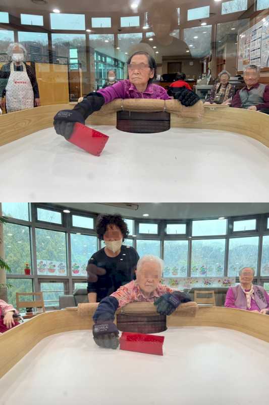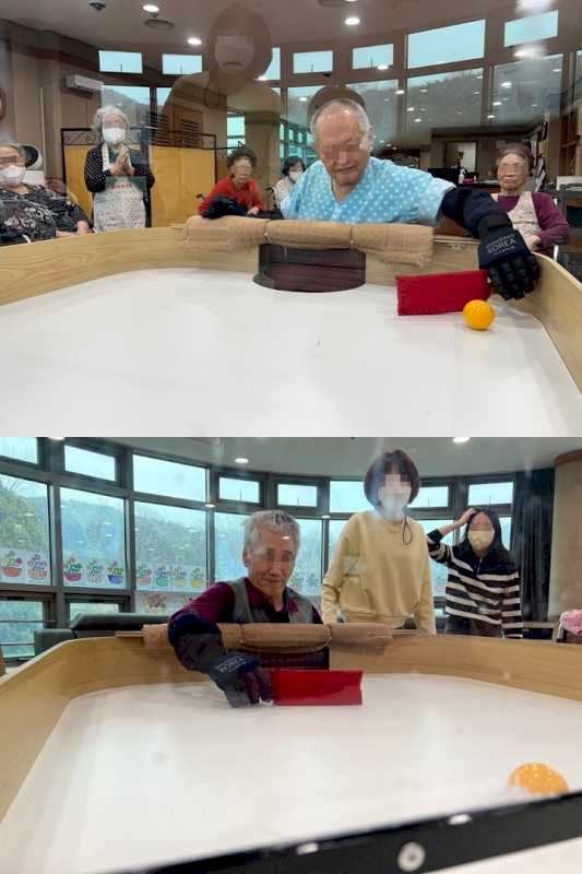 함께 홀탁구 게임을 하시며 활기차고 즐거운 시간을 보내셨습니다.