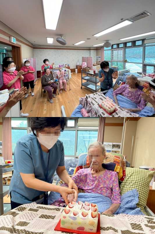 각방 어르신과 요양보호사님들과 함께 축하하는 시간을 가졌습니다.