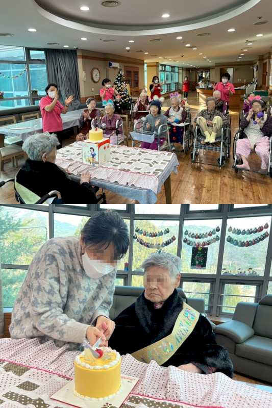 각방 어르신과 요양보호사님들과 함께 축하하는 시간을 가졌습니다.