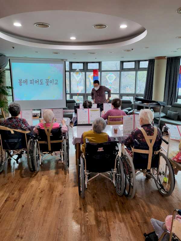 어르신들이 좋아하시는 노래를 준비하여 다함께 노래를 하는 시간을 가졌습니다.