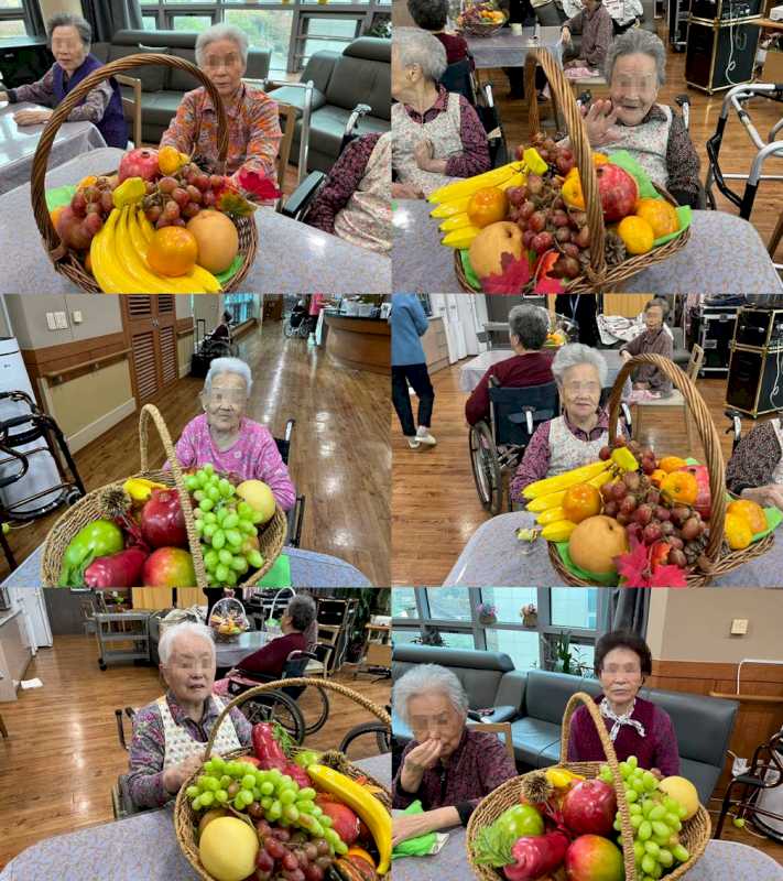 어르신들께서 과일 하나하나 감사의 마음을 담아 정성스럽고 깨끗하게 닦아 바구니에 예쁘게 올려주셨습니다.