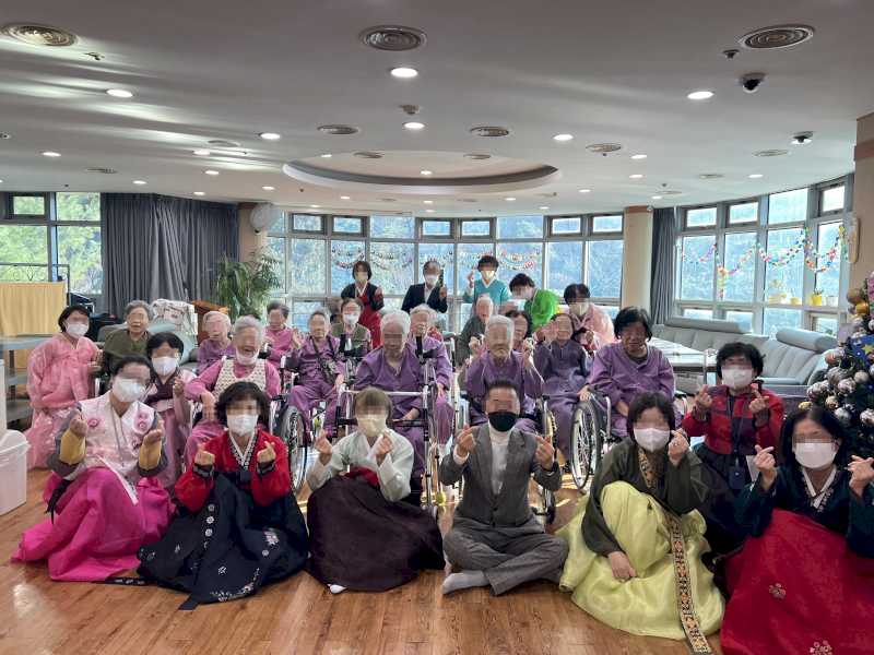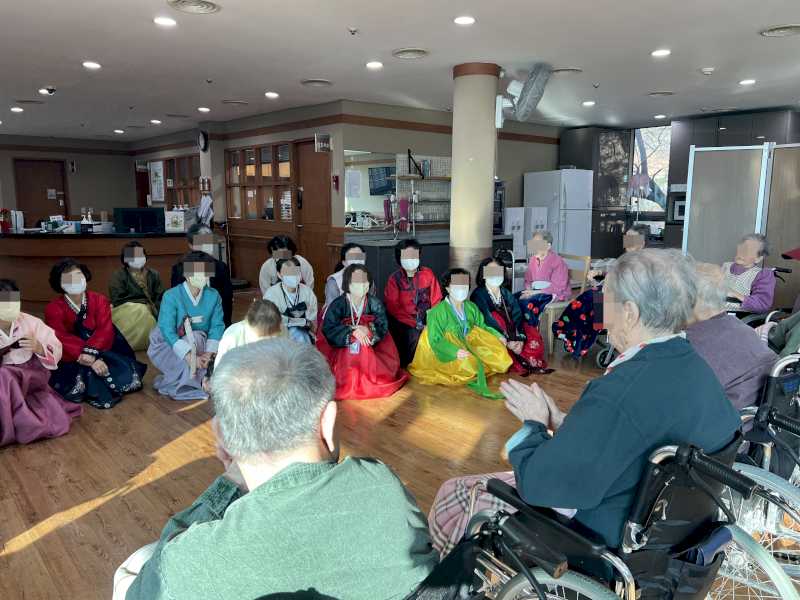 2024년 1월 1일을 맞아 세배를 드렸습니다. 어르신들은 생활한복을 입으셨고, 직원들도 한복을 차려 입고 모두의 건강과 안녕을 기원하며 절을 올렸습니다. 날마다 보는 얼굴들이지만, "한복 입으니 더 예쁘다" "더욱 건강하라" 좋은 말씀 해 주시며, 어르신들의 표정도 아주 밝으셨습니다.