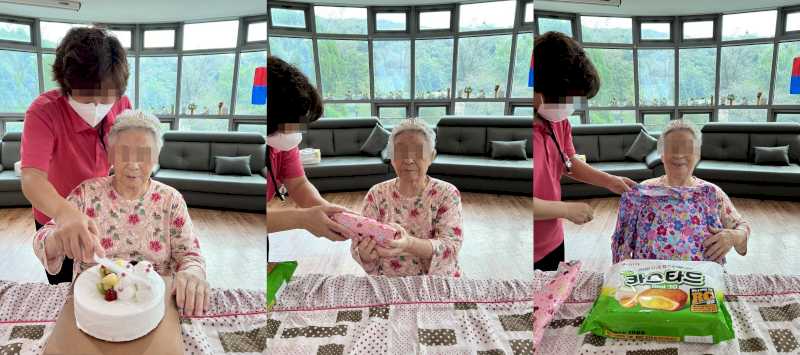 각방 어르신과 요양보호사님들과 함께 축하하는 시간을 가졌습니다.