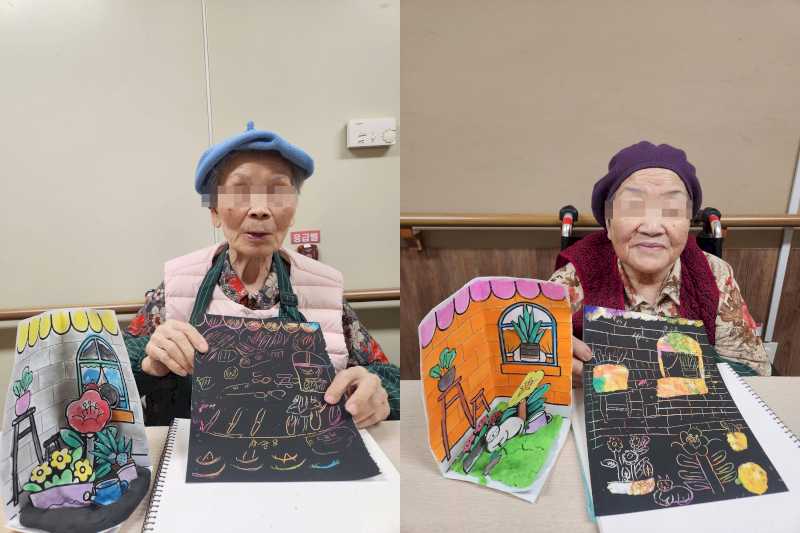 다양한 미술 활동을 하시며 즐거워하시고 작품 완성을 통해 성취감을 느끼시는 시간을 가졌습니다.