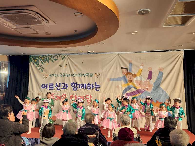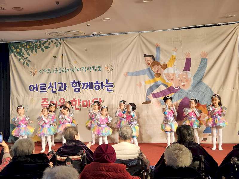 11. 11 세대교류활동 - 어린이집 방문 공연 페이지 정보 작성자 운영자 댓글 0건 조회 105회 작성일 26-01-21 09:12 본문 안양시국공립어린이집 연합회 소속 어린이들이 방문하여 어르신들께 귀엽고 사랑스러운 공연으로 어르신들께 큰 기쁨을 주었습니다. 목록 이전글11. 14 스토리미술 26.01.21 다음글11. 11 신바람운동 (기능회복훈련) 26.01.21 댓글목록 댓글목록 등록된 댓글이 없습니다.