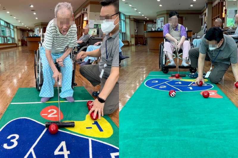 스카트볼을 하시며 몸을 움직이고 게임하시며 활기차고 즐거운 시간을 보내셨습니다.