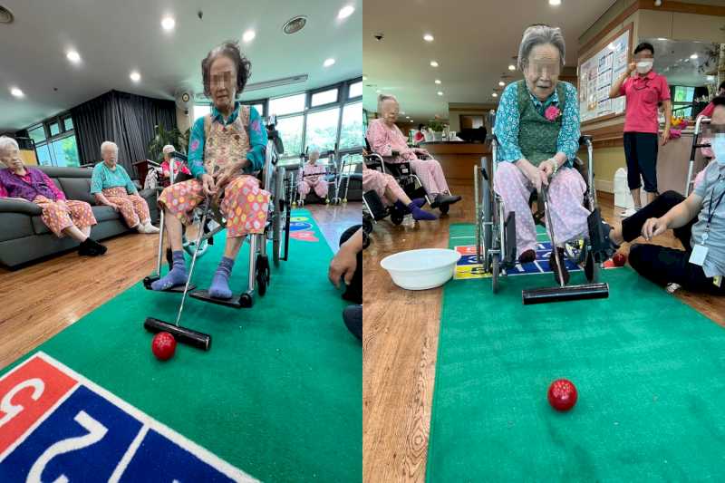 스카트볼을 하시며 몸을 움직이고 게임하시며 활기차고 즐거운 시간을 보내셨습니다.