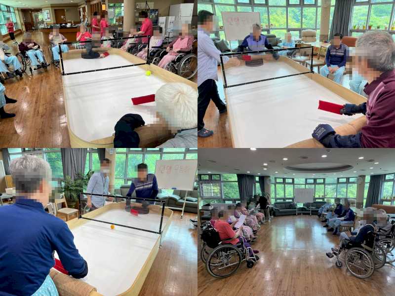 함께 홀탁구 게임을 하시며 활기차고 즐거운 시간을 보내셨습니다.