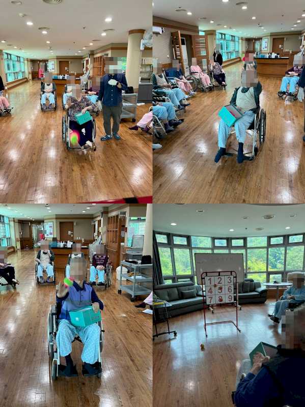 어르신들과 함께 실내에서 공 던지기를 하는 시간을 가졌습니다.