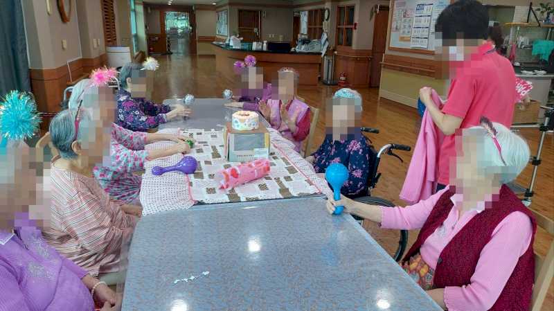 각방 어르신과 요양보호사님들과 함께 축하하는 시간을 가졌습니다.