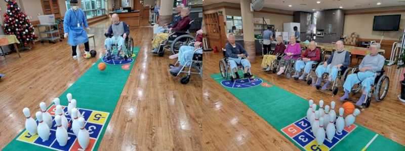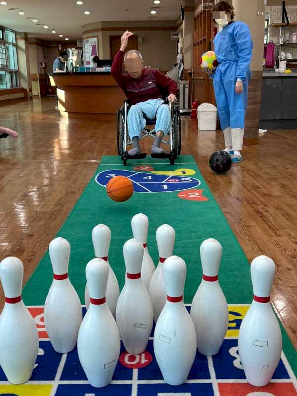 어르신들과 안양운동회 프로그램으로 실내에서 볼링 게임을 진행하셨습니다.