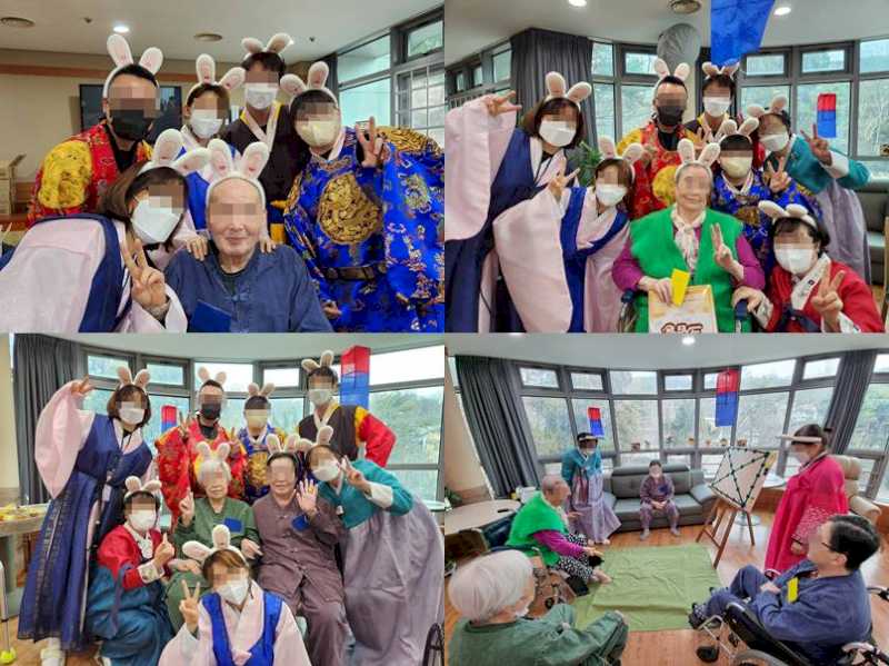 2023년 계묘년 설날을 맞이해 토끼 머리띠를 쓰고 한복, 사또, 도령, 임금 옷을 입고