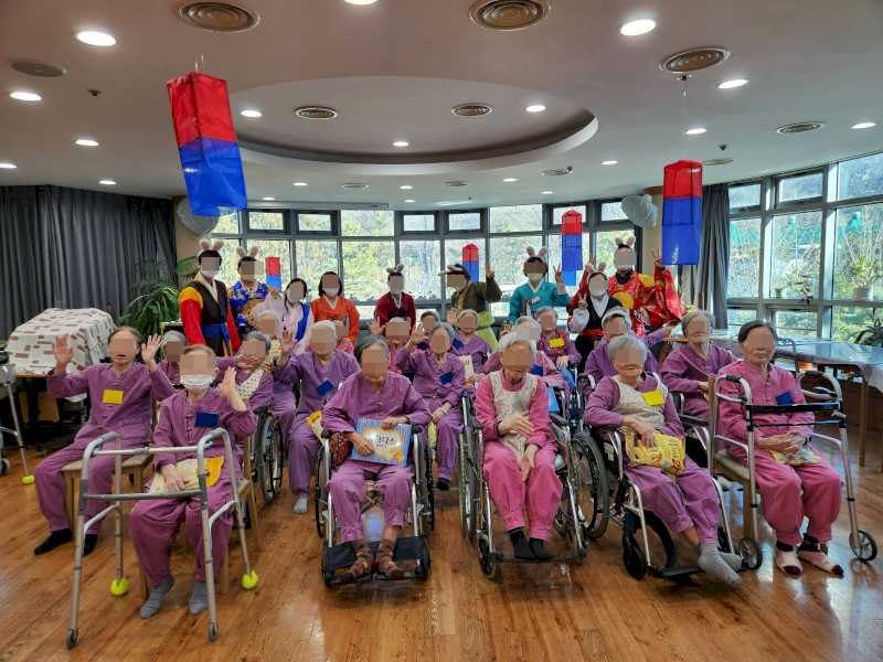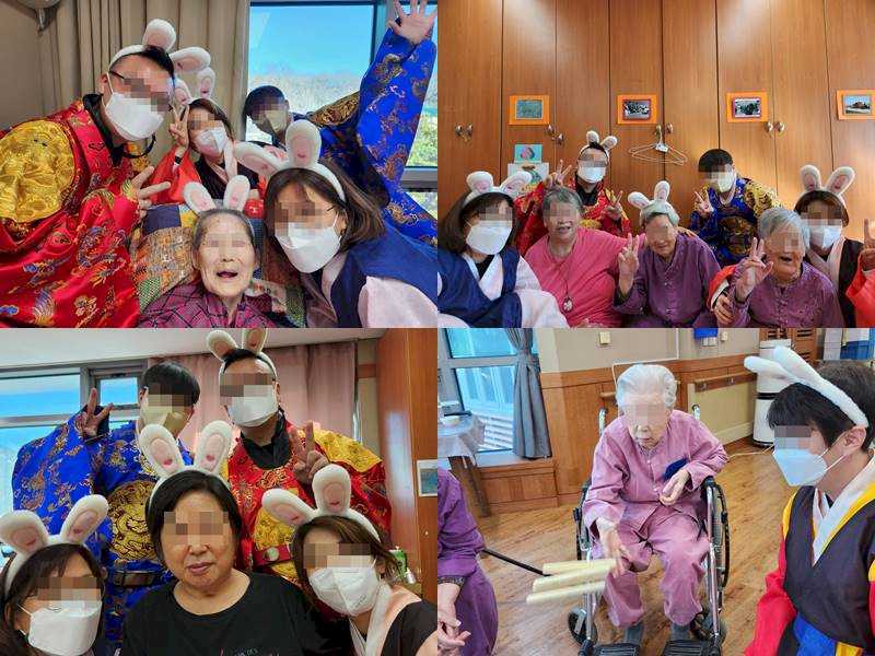 2023년 계묘년 설날을 맞이해 토끼 머리띠를 쓰고 한복, 사또, 도령, 임금 옷을 입고 사진촬영도 하고