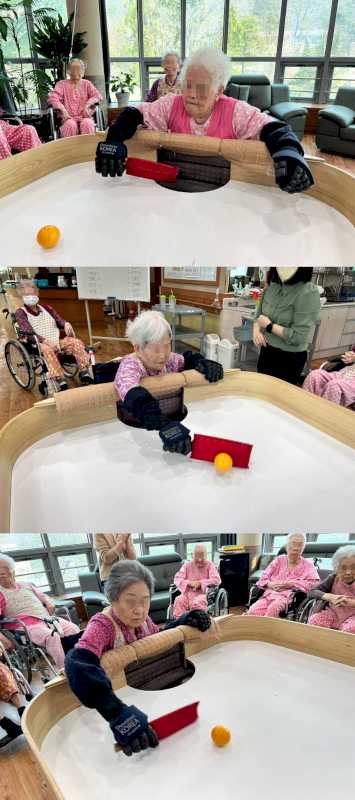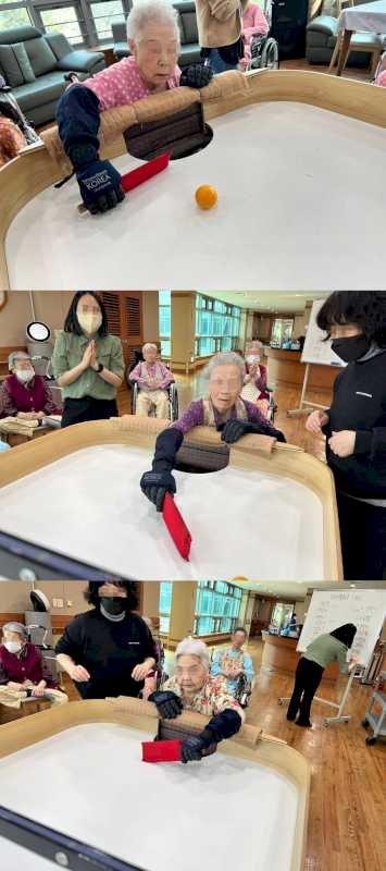 함께 홀탁구 게임을 하시며 활기차고 즐거운 시간을 보내셨습니다.