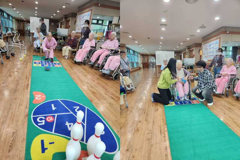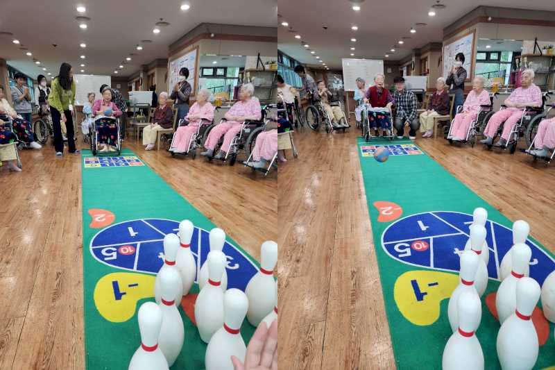 어르신들과 신체활동 프로그램으로 볼링을 진행하였습니다,
