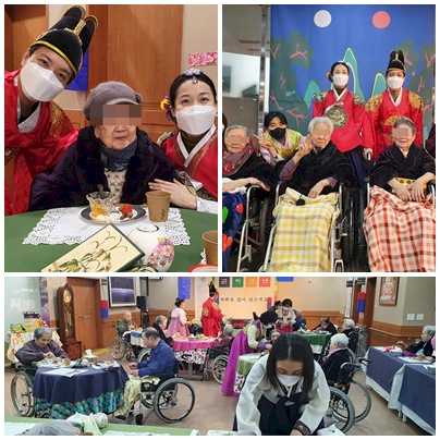 설날을 맞아 어르신들께 선물을 드리고, 잔치도 열었습니다. 행운권 뽑기 하시며 즐거워 하시고, 준비된 간식 맛있다 하시며 다양하게 맛 보셨습니다. 일월도 앞에서 왕, 왕비와 기념사진도 촬영하며 재미있는 하루를 보내셨습니다.