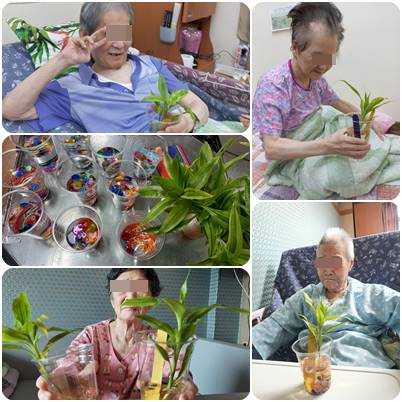 어르신들 방 안에서 키울 수 있도록 수경식물을 심고 꾸미었습니다.