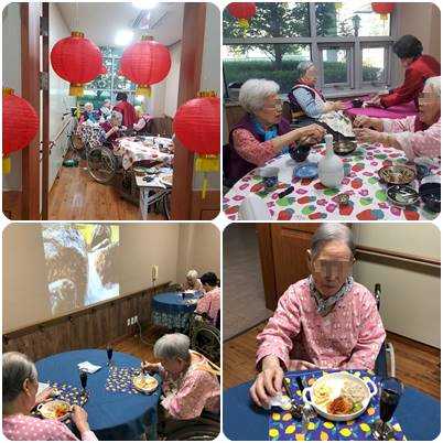 준비된 중국 분위기가 나는 장식 및 식기 및 옷차림을 보면서 더 즐거워시고 준비한 중국음식도 맛있게 드시고 행복해 하셨습니다.