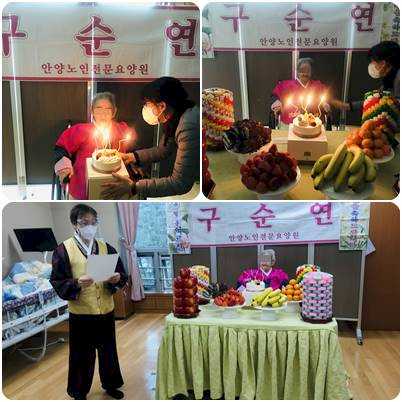 어르신 구순연을 맞이해서 생활관 안에서 축하해드렸습니다.