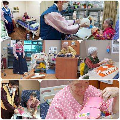 또한 오후에는 각층별로 설날행사를 진행하였습니다. 전통놀이를 하기도하고, 버선만들기도 하고, 요리(만두빚기,잡채)를 하며 설날행사를 하였습니다.