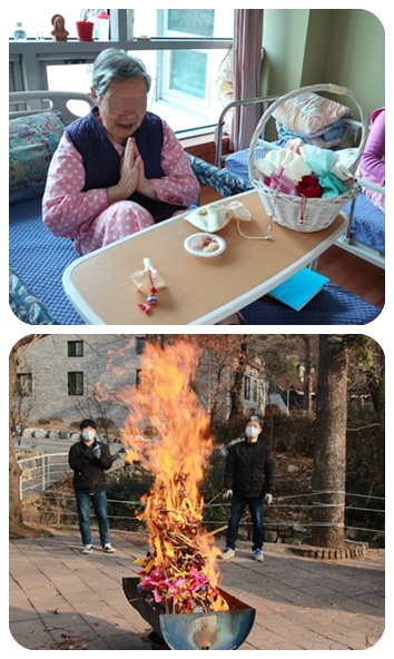 2월 7일(금) 정월대보름을 맞아 2020년 한 해 만사형통 그리고 건강을 기원하며 어르신께 밤, 호두, 땅콩 등이 들어있는 부럼주머니와 복조리를 전해드렸습니다. 그리고 어르신들의 소원이 적힌 소원종이를 달집에 매달아 소원이 이루어지기 바라는 마음으로 직원들이 함께 기도를 하며 달집태우기를 진행하였습니다.