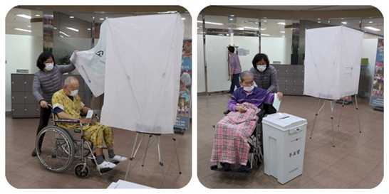 2020년 4월 9일 요양원 1층 로비에서 어르신들을 모시고 제 21대 국회의원 선거를 진행하였습니다.