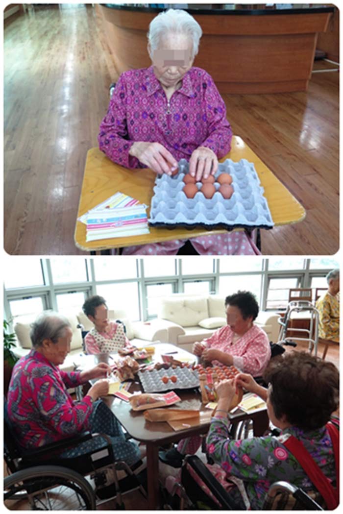 어르신들이 열심히 만들어 주신 부활절 달걀은 부활절에 요양원 모든 어르신들과 나누어드렸습니다.