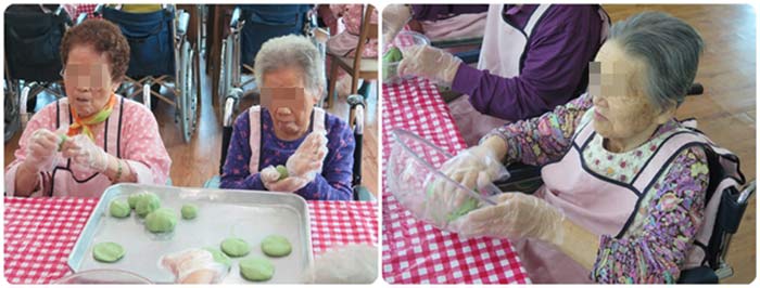 어르신들과 함께 쑥개떡을 만들어 보았습니다.