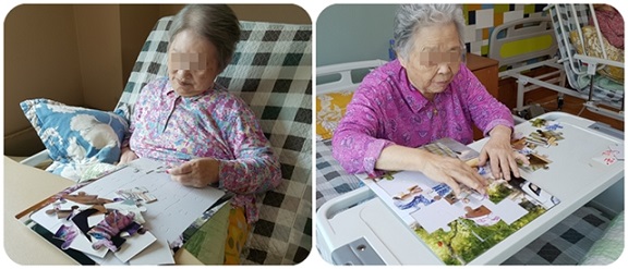 처음에는 어떤 그림인지 모르시고 맞추던 어르신들이 한 조각 한 조각 맞춰지면서