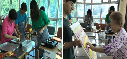 입이 즐거운 여행 프로그램으로 어르신께 달고나를 만들어드렸습니다.