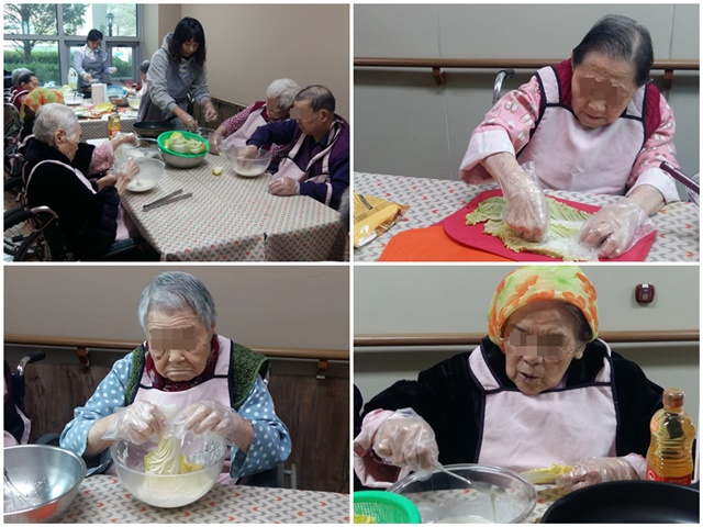 11월 16일 어르신들과 함께 요리활동으로 배추전을 만들었습니다.