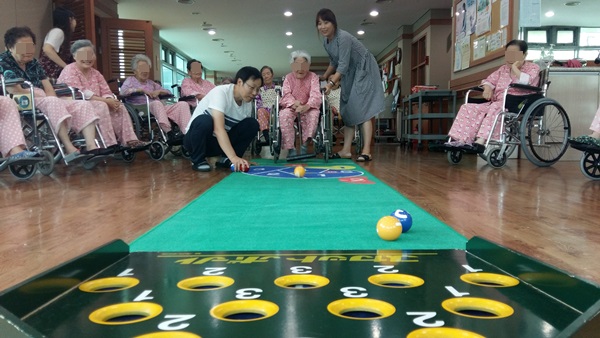 신체놀이활동 프로그램으로 스카트볼 게임을 하였습니다.