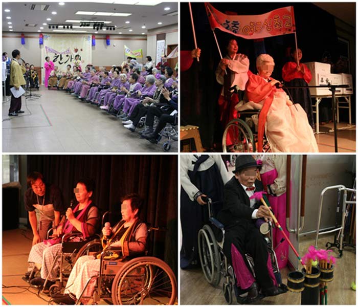 "풍류한마당"은 각 층별 노래자랑으로 진행되었는데 각 층별 대표가수로 선발된 어르신들께서 각자의 애창곡을 열창하셨습니다. 노래가 끝난 후 각 층의 응원곡인 ‘닐리리야’, ‘밀양아리랑’,‘군밤타령’합창으로 노래자랑은 마무리 되었고 심사 결과 우승은 주간보호센터와 별관어르신, 준우승은 2층 어르신, 응원상은 3층 어르신들께서 수상을 하셨습니다. 이 후에는 로비 한 켠에 마련된 투호 놀이를 하며 어린 시절 기억을 더듬어 보고 즐거워 하셨답니다.