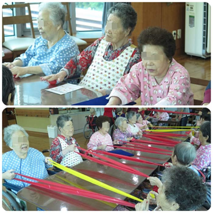 악력볼과 세라밴드를 이용한 간단한 스트레칭과 근력운동을 하였습니다.