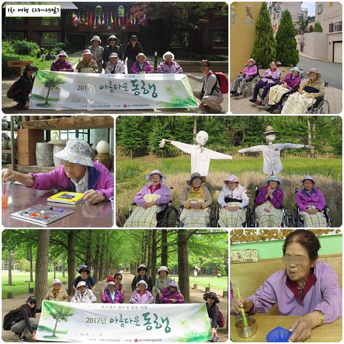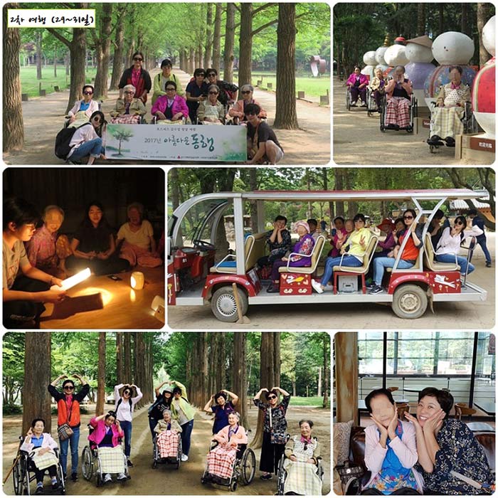 경기사회복지공동모금회 지원 사업인 아름다운 동행으로 어르신과 직원이 함께 23~25일, 29~31일 1,2차로 남이섬 여행을 다녀왔습니다.