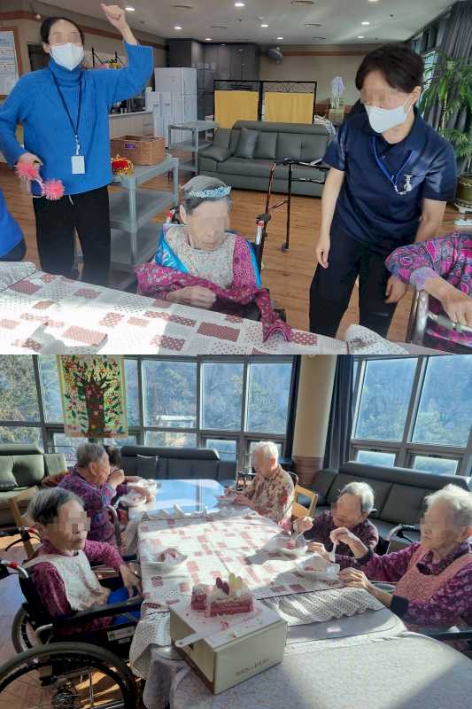 각방 어르신과 요양보호사님들과 함께 축하하는 시간을 가졌습니다.