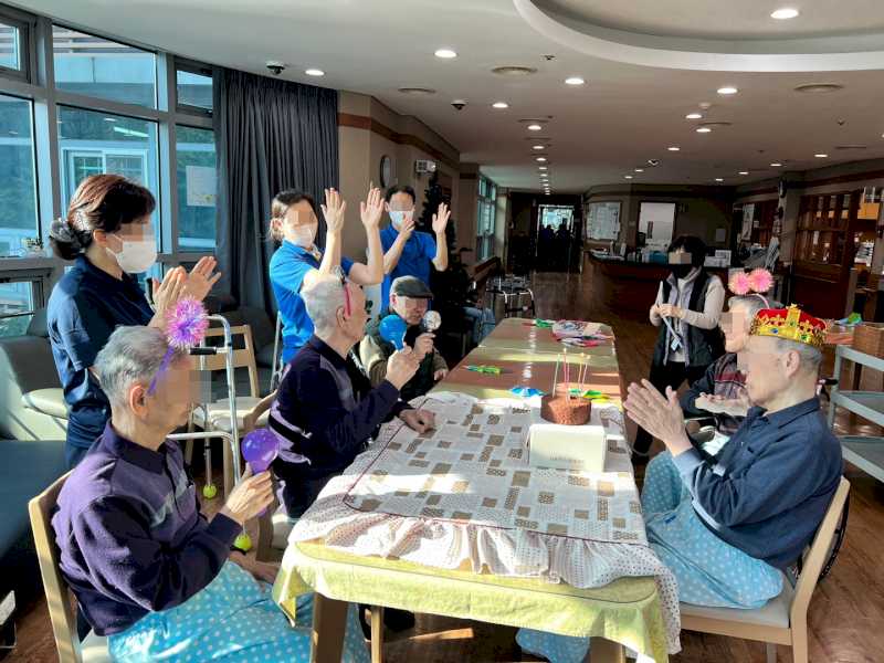 각방 어르신과 요양보호사님들과 함께 축하하는 시간을 가졌습니다.