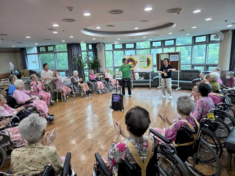 즐거워하시며 맛있는 간식도 잡수시며 열심히 활동하는 시간을 보내셨습니다.